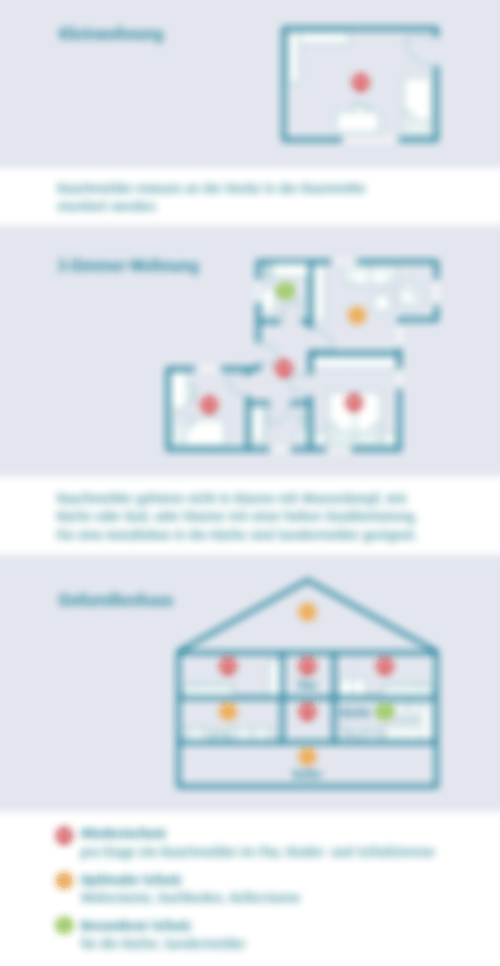 In allen Bundesländern mit einer Rauchmelderpflicht ist der Eigentümer für die Installation zuständig, unabhängig davon, ob der Wohnraum vermietet oder selbst genutzt ist. Allen Gesetzestexten zur Rauchmelderpflicht liegt die Anwendungsnorm DIN 14676 zugrunde: „Wegen der verminderten Wahrnehmung von Brandrauch im Schlaf sind Schlafbereiche, insbesondere Kinder- und Schlafzimmer sowie Flure durch Rauchwarnmelder zu überwachen. Bei offenen Verbindungen mit mehreren Geschossen ist mindestens auf der obersten Ebene ein Rauchwarnmelder zu installieren.“ Für die Wartung gibt es je nach Bundesland unterschiedliche Zuständigkeiten. Mehr zu den Regelungen in Ihrem Bundesland auf
